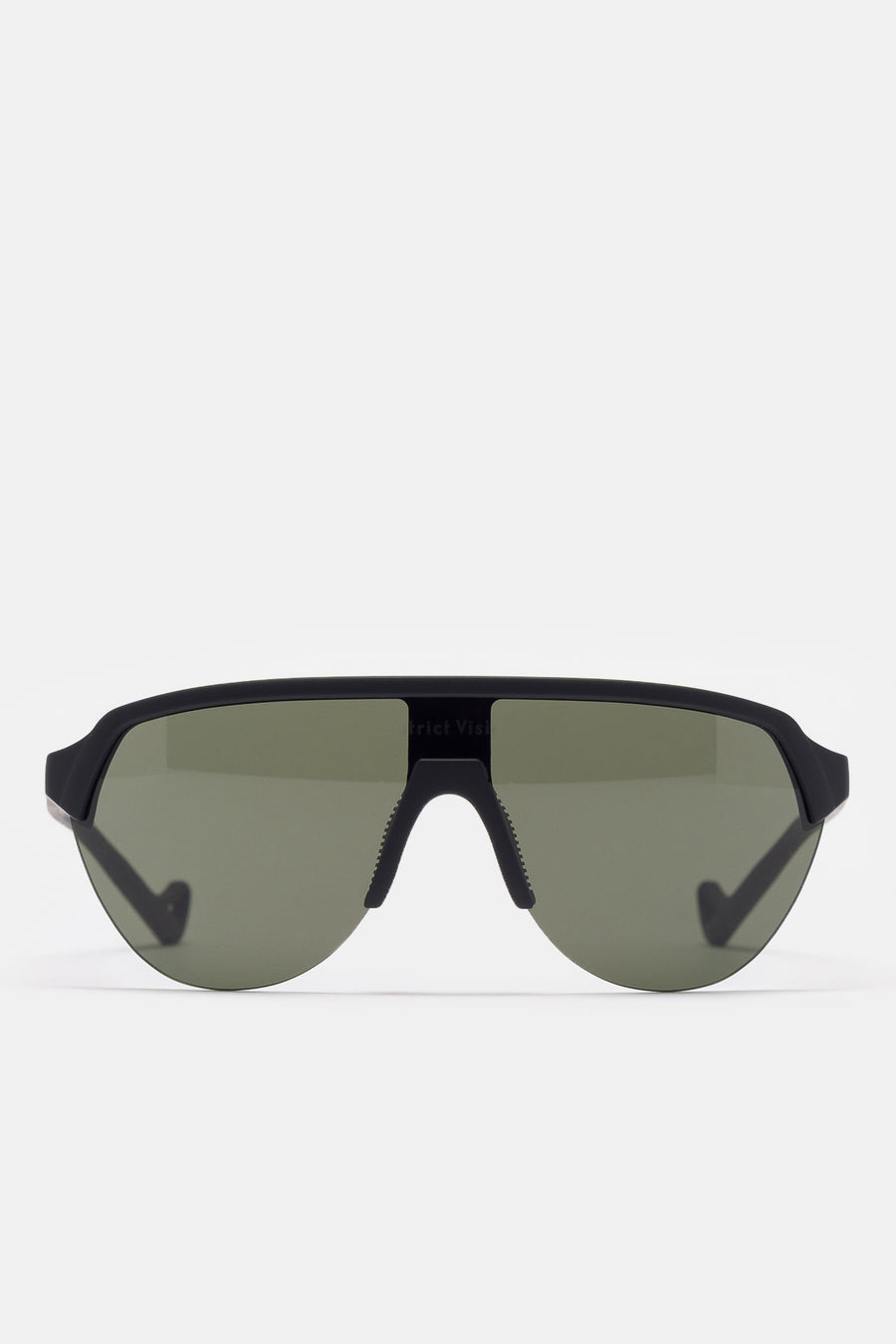 District Vision sunglasses in black and dark grey lens. Feature tinted lenses, a printed logotype, and aviator style frame. Feature - TR90 nylon injected frame - Logotype printed on lens - Beta titanium armature and hardware - D+ therauputc lenses Fabrication - Handmade in Japan SKU: DVG002-BLACKDG15-OS