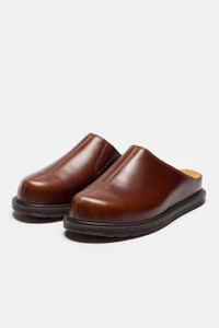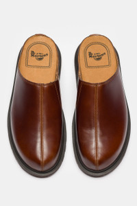 Dr. Martens unisex standard fit brown leather mule. Features a waxed leather upper, front seam, and a Goodyear-welted Shore cushioned sole. Fit - Standard fit - US men’s sizing Feature - Slip-on front - Leather upper Fabrication - Style # 41615200 - Made in England SKU: 41615200-5