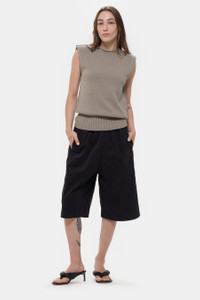 Entire Studios unisex boxing short in black. Features a drawstring waistband, wide leg, and single welt side pockets. Fit - Unisex regular fit Feature - Wide leg - Single welt side pockets - Back single welt pocket - Elasticated waistband - Drawstring waistband Fabrication - 97% cotton | 3% elastane - Made in China SKU: ESU-S25-5005-BL-XXS