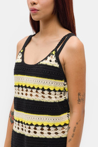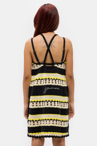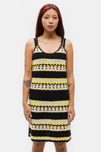 GANNI “Golden Kiwi” yellow and black striped organic cotton crochet slip dress. Features a scoop neck, various types of crochet stitches, and embroidered logotype in front. Fit - European women’s sizing - Runs true to size - We recommend your regular size - Model wears size 34 - Model’s height: 175 cm / 5´9´´ Feature - Various types of crochet stitches - Scoop neck - Embroidered logotype in front - Stripe pattern Fabrication - Material: 100% organic cotton - Made in China SKU: K1808-373-XS