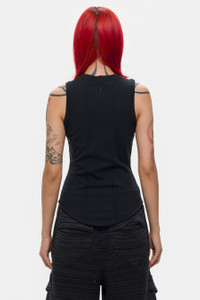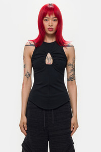Jordan Brand x Tela women's limited edition fitted tank top. Features stretchy knit, satin stitch embroidery, and window-shaped cutout. Fit - Slim fit - US women’s sizing Feature - Stretchy knit - Slim fit - Satin stitch embroidery - Window shaped cutout - Curved hem Fabrication - Style # IB0930-010 - Made in Vietnam SKU: IB0930-010-XS