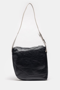 KIKO KOSTADINOV grained and buffed calfskin leather messenger bag. Features an adjustable strap, zip pocket with logo zipper, side keyring, and zip closure. Feature - Adjustable carrying strap - Zip pocket with logo zipper - Paneled leather detail - Zip front pocket - Logo engraved silvertone hardware - Nylon taffeta lining - Keyring at side - Includes drawstring dust bag Fabrication - Measurements: Height 12 in / Width 12 in / Depth 3.5 in - Material: 100% calf leather - Made in Italy SKU: KKSS25BG01-153-OS