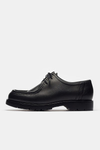 Kleman men’s standard fit black leather low top moc style shoe. Fit - Standard fit - EU men’s sizing Feature - Lace-up front - Rubber sole Fabrication - Style # ZA72102 - 100% leather - Rubber Sole - Made in France SKU: ZA72102-39
