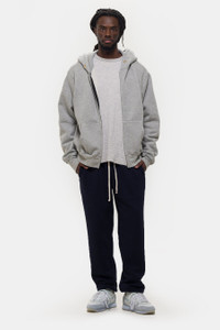 Les Tien heavyweight classic sweatpants in navy. Features garment dyed finish, elastic drawstring waistband, and ribbed cuffs Fit - Regular fit Feature - Regular fit Fabrication - 100% cotton SKU: CF-3001-NVY-XS