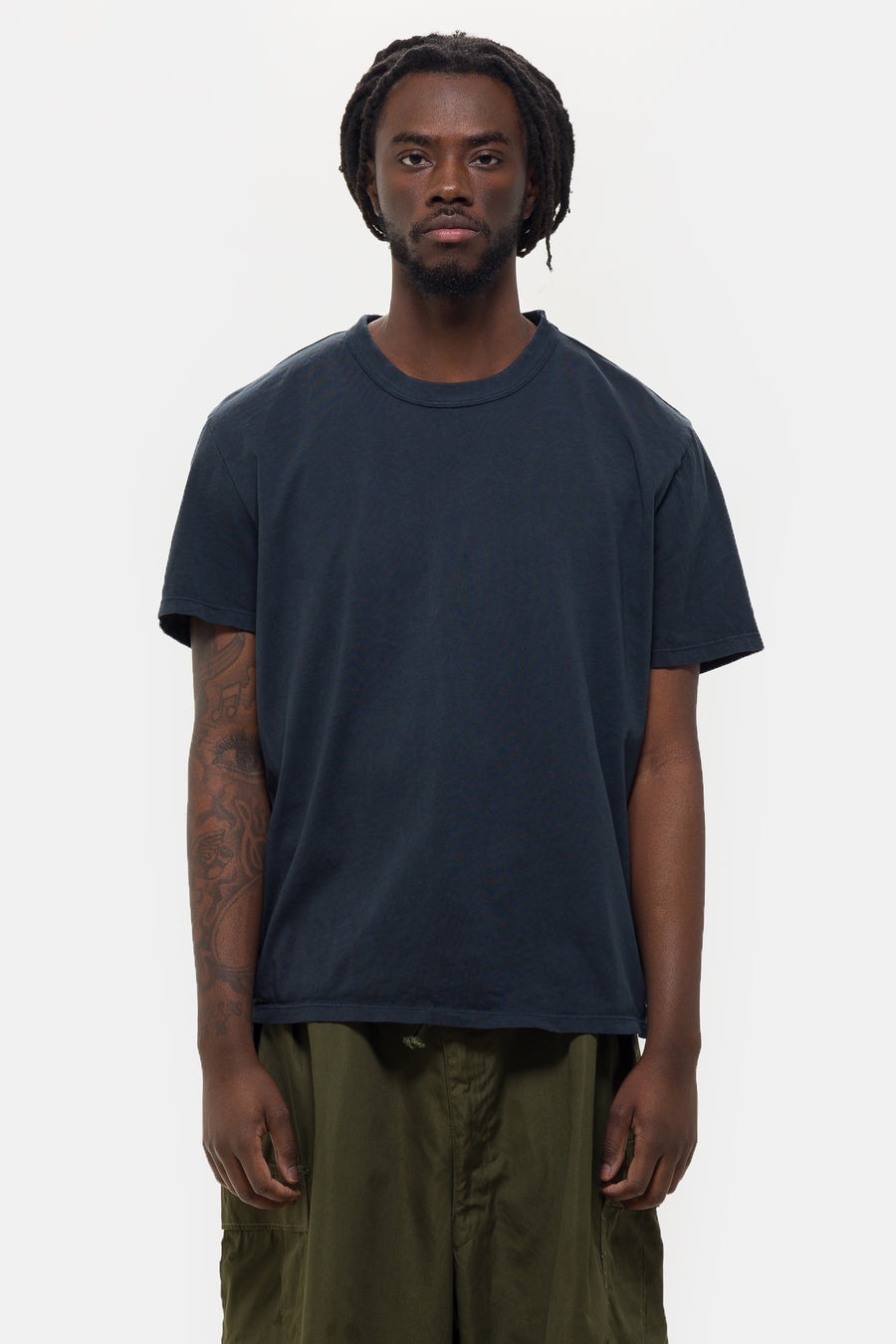 Les Tien lightweight binded neck t-shirt in faded black. Features garment dyed finish, dropped shoulders and boxy fit. Fit - Boxy fit Feature - Boxy fit Fabrication - 100% cotton SKU: CJ-2082-FBLK-M