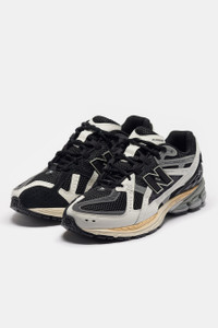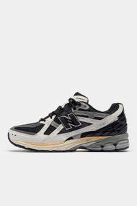 New Balance men’s limited edition standard fit black, “Sea Salt” off-white, and “Magnet” black mesh low-top retro running sneaker. Features a mesh upper with metallic and reflective overlays throughout and ABZORB and N-ergy cushioning. Fit - Standard fit - US men's sizing Feature - Lace-up front - Mesh upper - Metallic and reflective synthetic overlays - Rounded toe - Padded collar - Reflective details - N-ergy ® midsole+ - ABZORB ® cushioning technology - Ndurance™ rubber outsole - Tonal textile lining Fabrication - Style # M1906NC - Made in Vietnam SKU: U1906NC-4