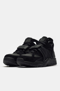 Nike men’s limited edition standard fit black leather and suede mid top basketball sneaker. Features a lace-up front, a tongue tab for easy on-and-off, a buckle strap on the vamp, and reflective details. Fit - Standard fit - US men’s sizing - Buy 1.5 sizes down for US women’s sizing Feature - Lace-up front - Adjustable velcro strap - Heel pull tab - Suede upper - Textile underlays - Padded tongue and collar - Foam midsole - Rubber outsole Fabrication - Style # IB0497-002 - Made in Indonesia SKU: IB0497-002-9
