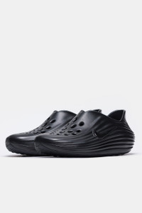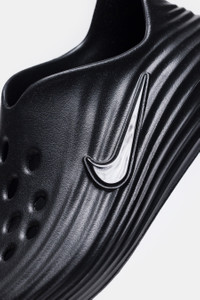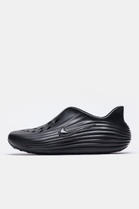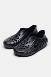 Nike standard fit women's black foam low top recovery clog. Fit - Standard fit - US Women’s sizing Feature - Ultra Soft ReactX Foam - Ventilation holes - Nike swoosh logo on both medial and lateral side Fabrication - Style # HV5062-001 SKU: HV5062-001-5