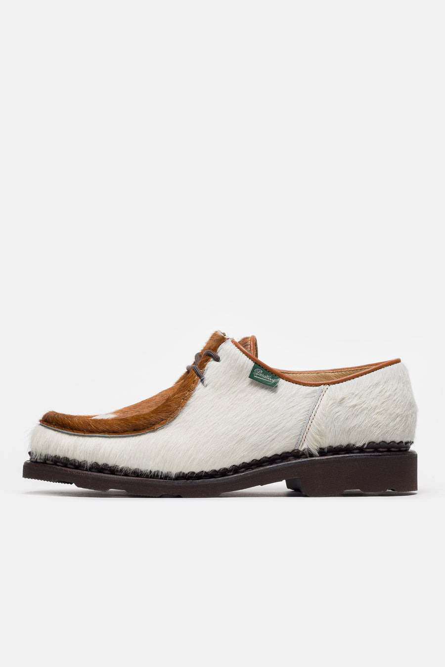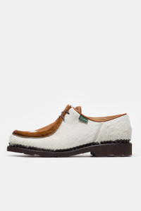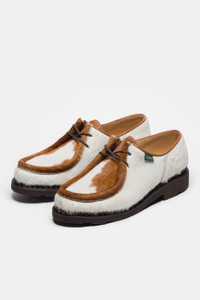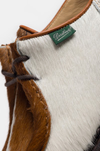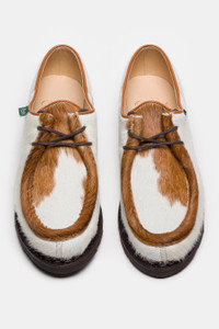 Paraboot women’s standard fit hair on hide cow leather low top moc style shoe. Fit - Standard fit - UK women’s sizing - Runs half size big - Recommend sizing half a size down for proper fit Feature - Lace-up front - Rubber sole - Handmade - Norwegian Welted Construction - Leather Lining - Green Paraboot logo tab - Moc style upper - Each pair has a unique cow pattern Fabrication - Style # 194863 - 100% Cowhide - Rubber Sole SKU: 194863-3