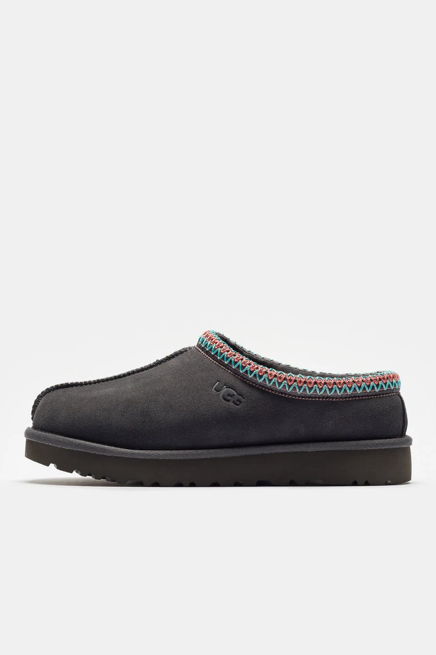 UGG women's standard fit dark grey suede mule. Features signature UGGbraid on the collar, sheepskin interior, and sugarcane EVA outsole. Fit - Standard width - US women's sizing Feature - Sheepskin interior - Suede upper - Rounded toe - Uggbraid around collar - Heat embossed and woven tag logo - Sugarcane EVA outsole Fabrication - Style # 1174470-DGRY SKU: 1174470-DGRY-6