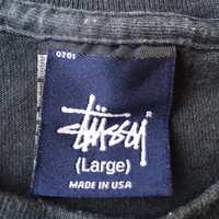 FOR SALE : vintage stussy tee Size On Tag : large by stussy , check measurement Please read the description , check actual size and see the pictures carefully all sales are finals no refund and return SHIPPING BY EMS (express mail sercvice) with tracking numbers from Indonesia