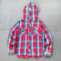 Bape - Full Buttoned Flannel Check Hoodie - Brand: Bape Year: Made in: Japan Material: Cotton Color: Multicolor Size on tag: Small Sizing: (Measurements, flat not stretched) Shoulder: 16” Sleeves: 24” Width: 19.5” Hem: 19 Length: front - 24.5” back – 26” Color rating: 8.5/10 Condition overall: 8.5/10 Issues: minimal signs of usage for more info messaged us IG @archived_g_ Whatsapp +63 915-415-9586