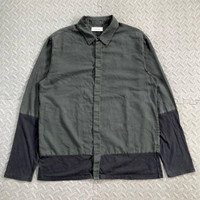 Helmut Lang Two Tone Black Shirt Brand: Helmut Lang Year: Color: Black Size on tag: Large Sizing: Measurements (flat, not stretched): Shoulders: 20” Sleeves: 26” Width: 22” Hem: 22” Length: 29.5” Color rating: 8.5/10 Condition overall: 8.5/10 Issues: signs of usage DM here for more pics and info IG @archived_g_ and inbox me on my whatsapp