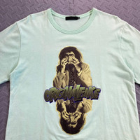 2008 OriginalFake “Frightenstein” Monster Tee - Brand: OriginalFake Year: 2008 Color: Mint green Marked size: 3 Fits: Large Shoulders: 19.5” Sleeves: 9” Width: 20.5” Hem: 22” Length: 27.5” Color rating: 9/10 Condition overall: 8.5/10 Flaws: barely noticeable white discolorations DM here for more pics and info IG @archived_g_ and inbox me on my whatsapp