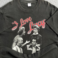 Vintage 1993 “I Love Lucy” TV Show Tee - Tag: Fruit of the Loom Year: 1993 Stitching: Single stitch collar & sleeves Marked size: Large Fits: Shoulders: 20” Sleeves: 8” Width: 21” Hem: 22” Length: 28.5” Color rating: 7.5/10 Condition: 7.5/10 Flaws: pinholes & small hole around the shirt, discoloration DM here for more pics and info IG @archived_g_ and inbox me on my whatsapp