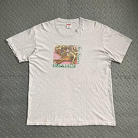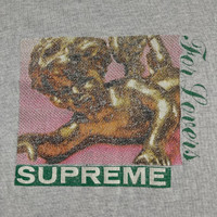 Supreme FW20 Lovers Tee Brand: Supreme Year: 2020 Made in: USA Material: Cotton Color: Heather Gray Size on tag: Medium Sizing: Large Measurements (flat, not stretched): Shoulders: 20” Sleeves: 8” Width: 22” Hem: 23” Length: 28.5” Color rating: 8/10 Condition overall: 7/10 Issues: signs of usage, pinhole, stains, crack prints DM here for more pics and info IG @archived_g_ and inbox me on my whatsapp