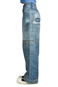 UNISEX CUSTOM-LIKE PRINTED DENIM PANTS / MID BLU