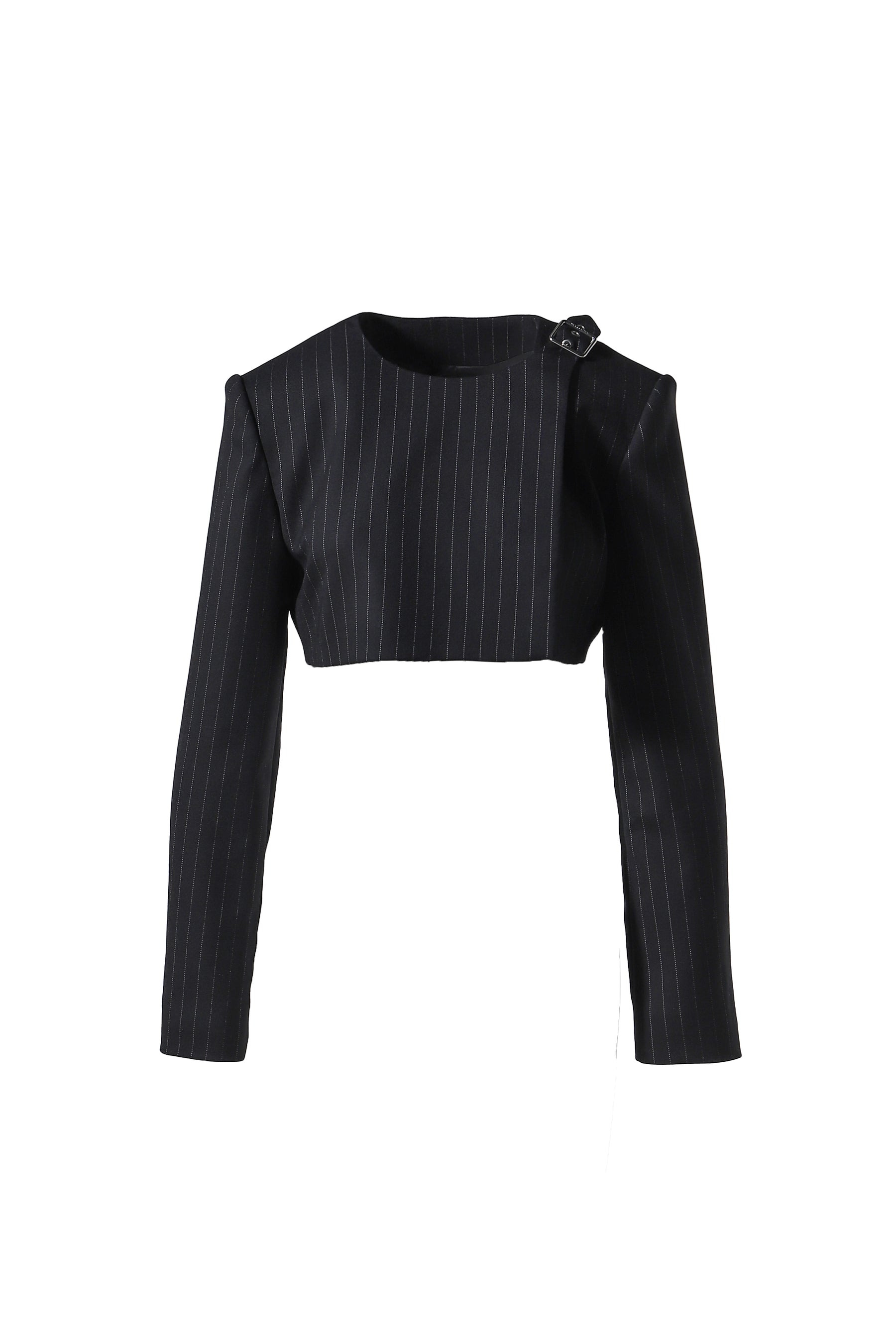 BUCKLE TAILORED PINSTRIPE TOP / BLK/WHT