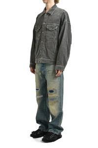 BONE APPLIQUE CORDUROY JACKET / GRY