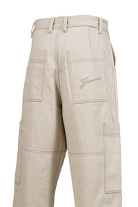 Sizing Size Waist Front Rise Inseam Full Length Thigh Hem 30 84cm 38cm 76cm 114cm 36cm 25cm 32 88cm 38cm 77cm 115cm 38cm 26cm 34 98cm 38cm 78cm 116cm 40cm 26cm Product Detail - Gender: MEN - Designer: JACQUEMUS - Categories: CARGO PANTS JACQUEMUS cargo pants - Material: COTTON 80%, HEMP20% - Model Number: 25hpam00541ad00044-bei