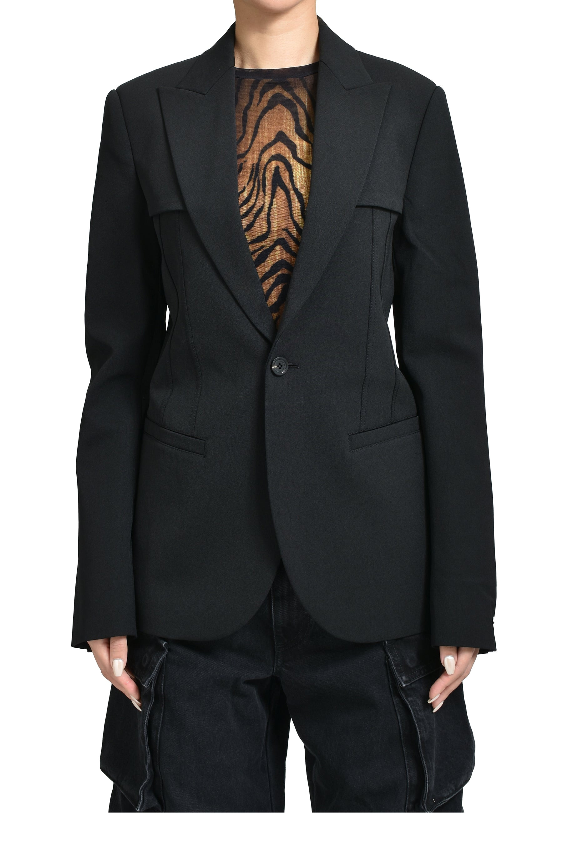 Sizing Size Length Pit to Pit Shoulders Sleeve Length 36 68cm 43cm 40cm 65cm Product Detail - Gender: WOMEN - Designer: Jean Paul Gaultier - Categories: ウィメンズ ブレザー Jean Paul Gaultier x Jackets Coats - Material: POLYAMIDE 94%, ELASTANE 6% - Model Number: 25-03-w-ja010-w002blk