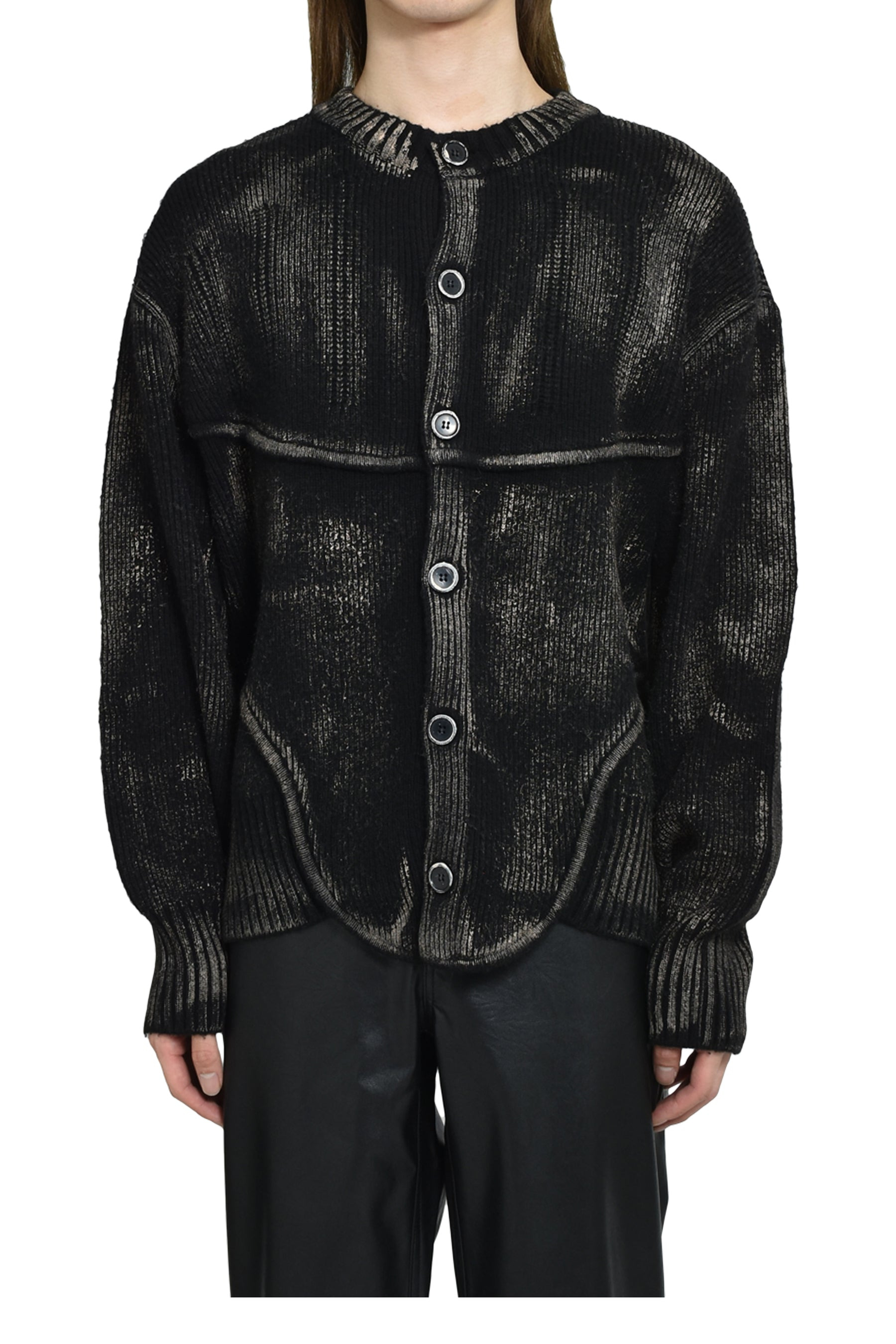 PAINTED CORSET KNIT CARDIGAN / BLK