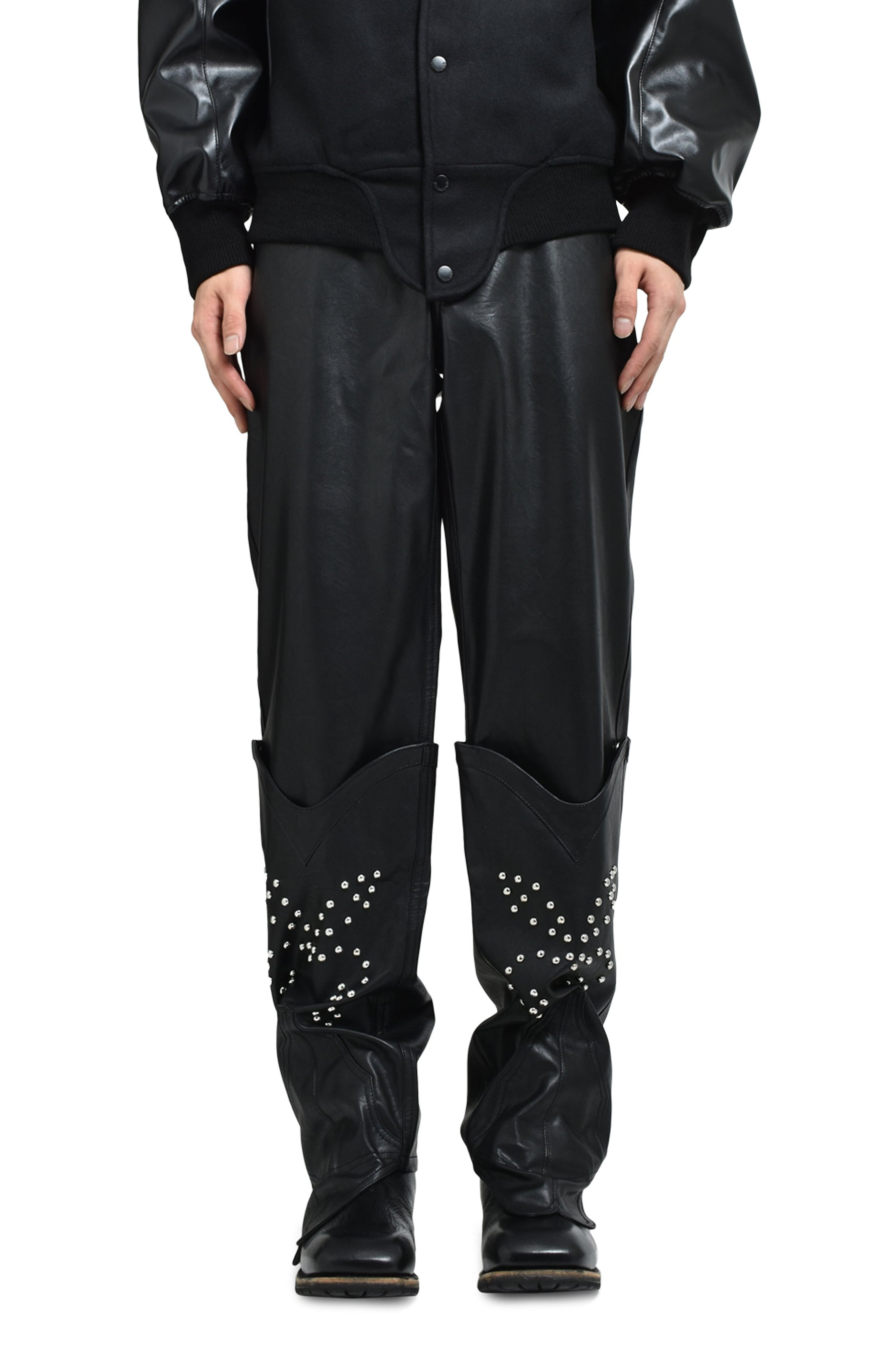 Sizing Size Waist Rise inseam Total length thigh width Hem width M 80cm 30cm 80cm 110cm 30cm 19cm L 84cm 30cm 81cm 111cm 32cm 20cm Product Detail - Gender: MEN - Designer: JUNTAE KIM - Categories: BLACK LEATHER PANTS JUNTAE KIM x Pants - Material: 100% Polyurethane - Model Number: jtk_aw25_t17
