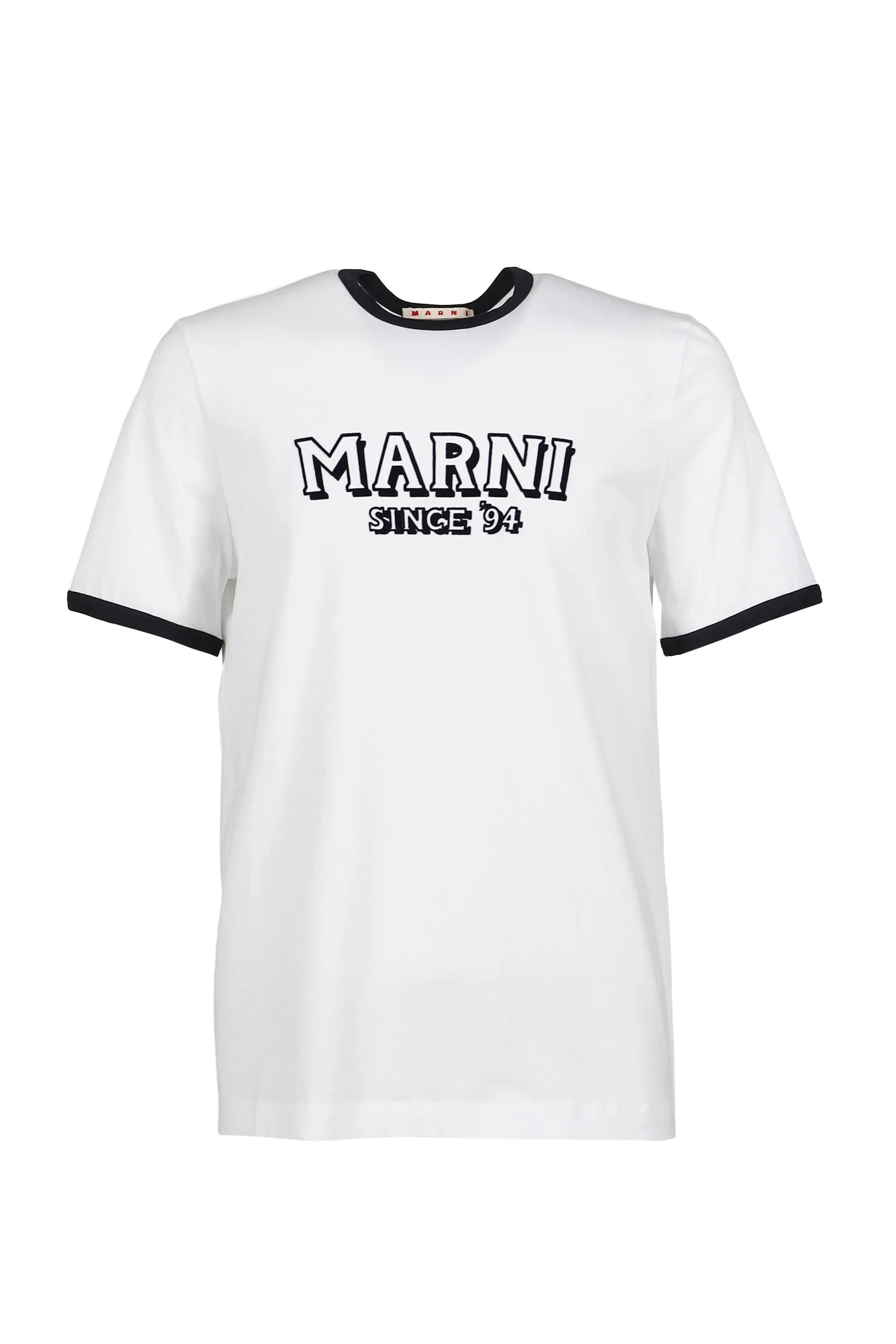 Sizing Size Length Pit to Pit Shoulders Sleeve Length 44 70cm 49cm 42cm 25cm 46 71cm 51cm 43cm 25cm 48 72cm 53cm 44cm 25cm 50 73cm 55cm 45cm 26cm Product Detail - Gender: MEN - Designer: MARNI - Categories: SHORT SLEEVES T-SHIRTS MARNI ss t-shirts - Material: COTTON 100% - Model Number: humu0198mp-uscy91-lily-wht