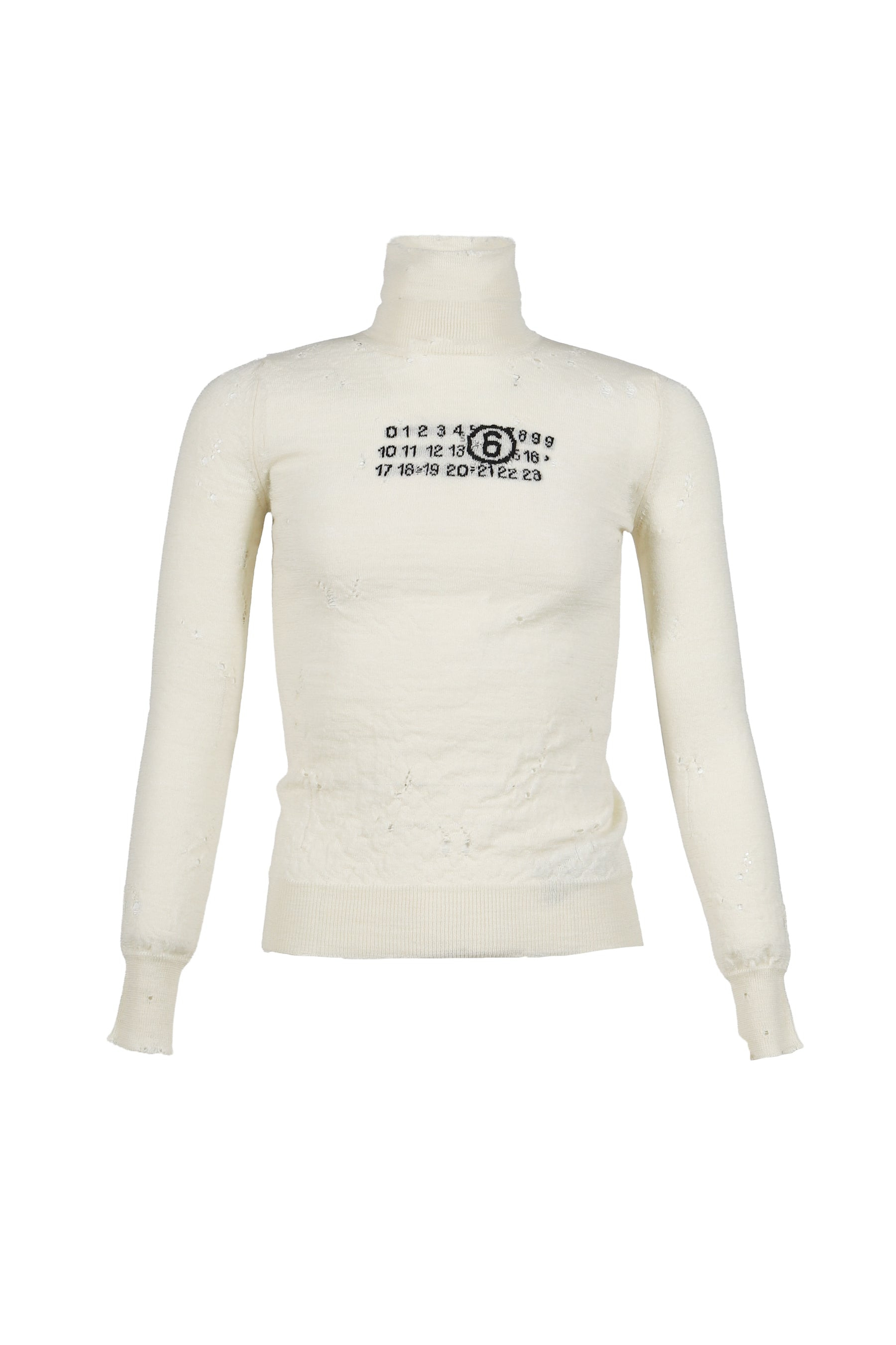 Sizing Size Length Pit to Pit Shoulders Sleeve Length S 60cm 41cm 33cm 63cm M 64cm 44cm 35cm 63cm Product Detail - Gender: WOMEN - Designer: MM6 Maison Margiela - Categories: ウィメンズ セーター - Material: VIRGIN WOOL 100% - Model Number: s52ha0299-m13134-103-fw25