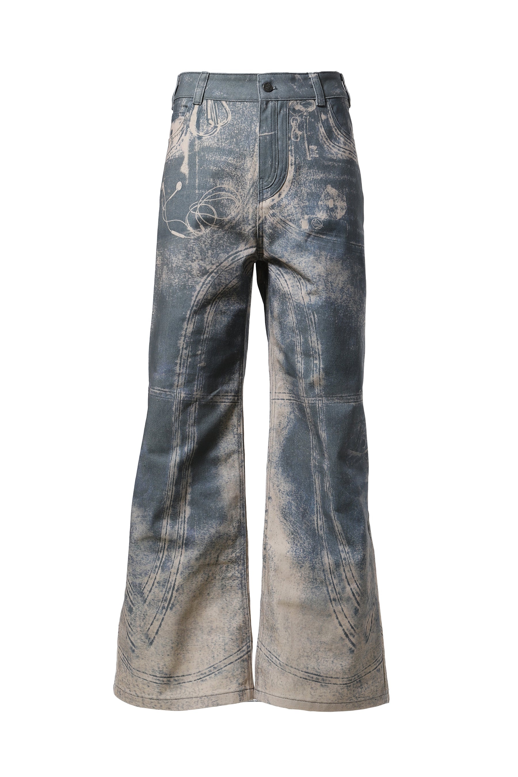 Sizing Size Waist Front Rise Inseam Full Length Thigh Hem S 76cm 31cm 78cm 111cm 33cm 30cm M 82cm 32cm 79cm 113cm 34cm 31cm L 88cm 35cm 80cm 115cm 37cm 33cm XL 94cm 35cm 80cm 115cm 37cm 34cm Product Detail - Gender: MEN - Designer: NO/FAITH STUDIOS - Categories: FLARE JEANS - Model Number: printed-denim-ind