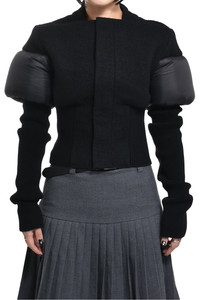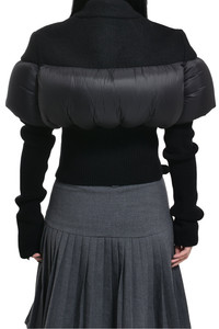 Sizing Size Length Pit to pit Shoulders Sleeve 38 48cm 42cm 45cm 77cm 40 49cm 43cm 46cm 79cm Product Detail - Gender: WOMEN - Designer: Rick Owens - Categories: WOMENS JACKETS & COATS - Material: NEW WOOL 100%(FRONT AND BACK YOKE), NYLON 100%(CENTRAL BACK AND SLEEVES DETAIL), CASHMERE 97%(KNIT RIB ARM WARMERS AND BOTTOM), WOOL 3%(KNIT RIB ARM WARMERS AND BOTTOM), GOOSE DOWN 90%(DETAILS PADDING), MALLARD FEATHERS 10%(DETAILS PADDING) - Model Number: ro02c1794wfnndx-9