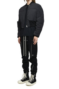 Sizing Size Length Pit to Pit Shoulders Sleeve Length 46 52 cm 54 cm 54 cm 67 cm Product Detail - Gender: MEN - Designer: Rick Owens - Categories: BOMBER JACKETS Rick Owens x Jackets Coats - Material: NYLON 100%(SHELL), KINT WOOL 100%(RIB), FEATHER 80%, POLYESTER 20% - Model Number: ru02e1754mtt0