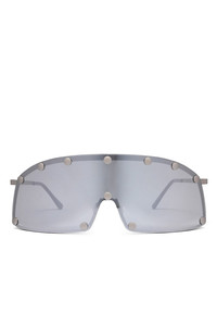 Sizing Size Height Width Temple UNI 6cm 17cm 11cm Product Detail - Gender: MEN - Designer: Rick Owens - Categories: SUNGLASSES - Material: STAINLESS STEEL(FRAME), NYLON(LENSES) - Model Number: rg0000001-gsilv-1818-ss25
