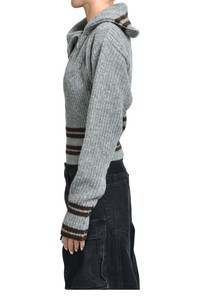 Sizing Size Length Pit to Pit Shoulders Sleeve Length 36 49cm 41cm 45cm 60cm 40 50cm 44cm 45cm 64cm Product Detail - Gender: WOMEN - Designer: THE ATTICO - Categories: ウィメンズ カーディガン - Material: WOOL 60%, NYLON 40% - Model Number: 251wcd00008-gray