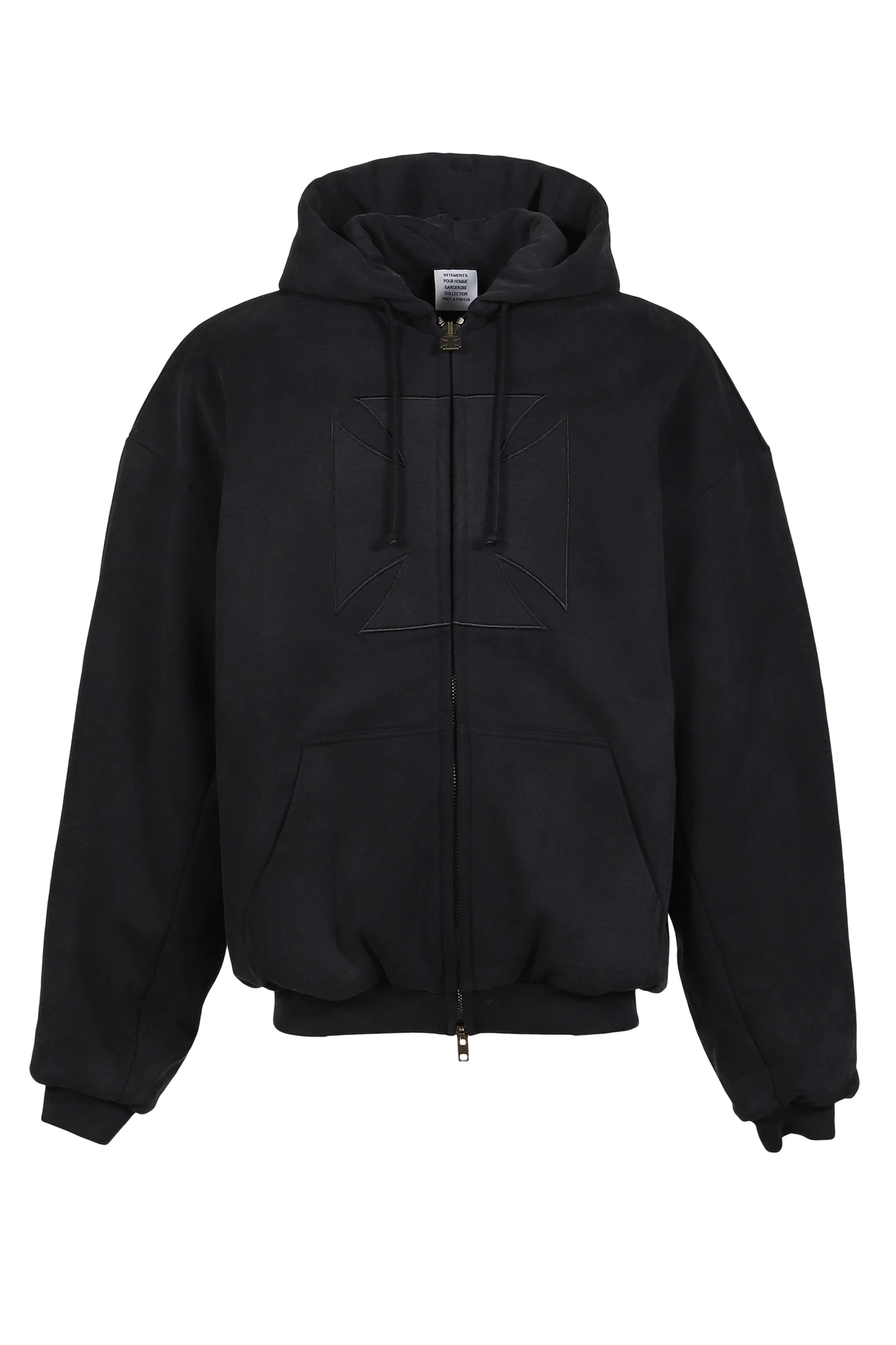 Sizing Size Length Pit to Pit Shoulders Sleeve Length XS 70cm 67cm 65cm 60cm S 70cm 70cm 65cm 61cm M 70cm 70cm 68cm 62cm Product Detail - Gender: MEN - Designer: VETEMENTS - Categories: ZIP-UP HOODIES VETEMENTS hoodies - Material: COTTON 100% - Model Number: me76bj005-blk