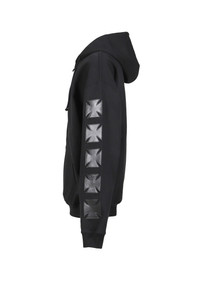LEATHER BIKER CROSS ZIP-UP HOODIE / BLK