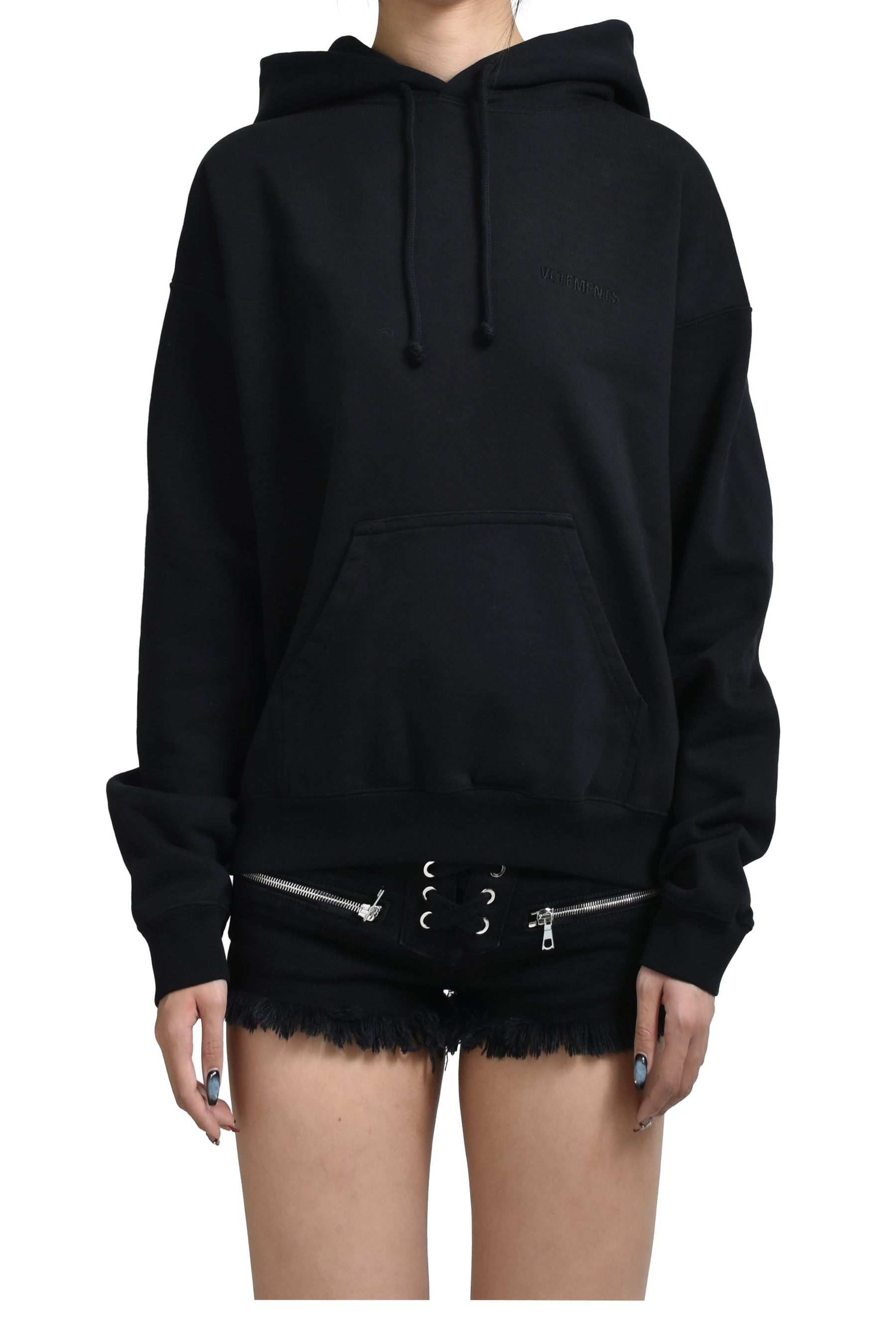 Sizing Size Length Pit to Pit Shoulders Sleeve Length XS 56cm 52cm 53cm 56cm S 57cm 53cm 54cm 58cm Product Detail - Gender: WOMEN - Designer: VETEMENTS - Categories: WOMENS HOODIES - Material: COTTON 80%, POLYESTER 20% - Model Number: uh76hd130b-blk