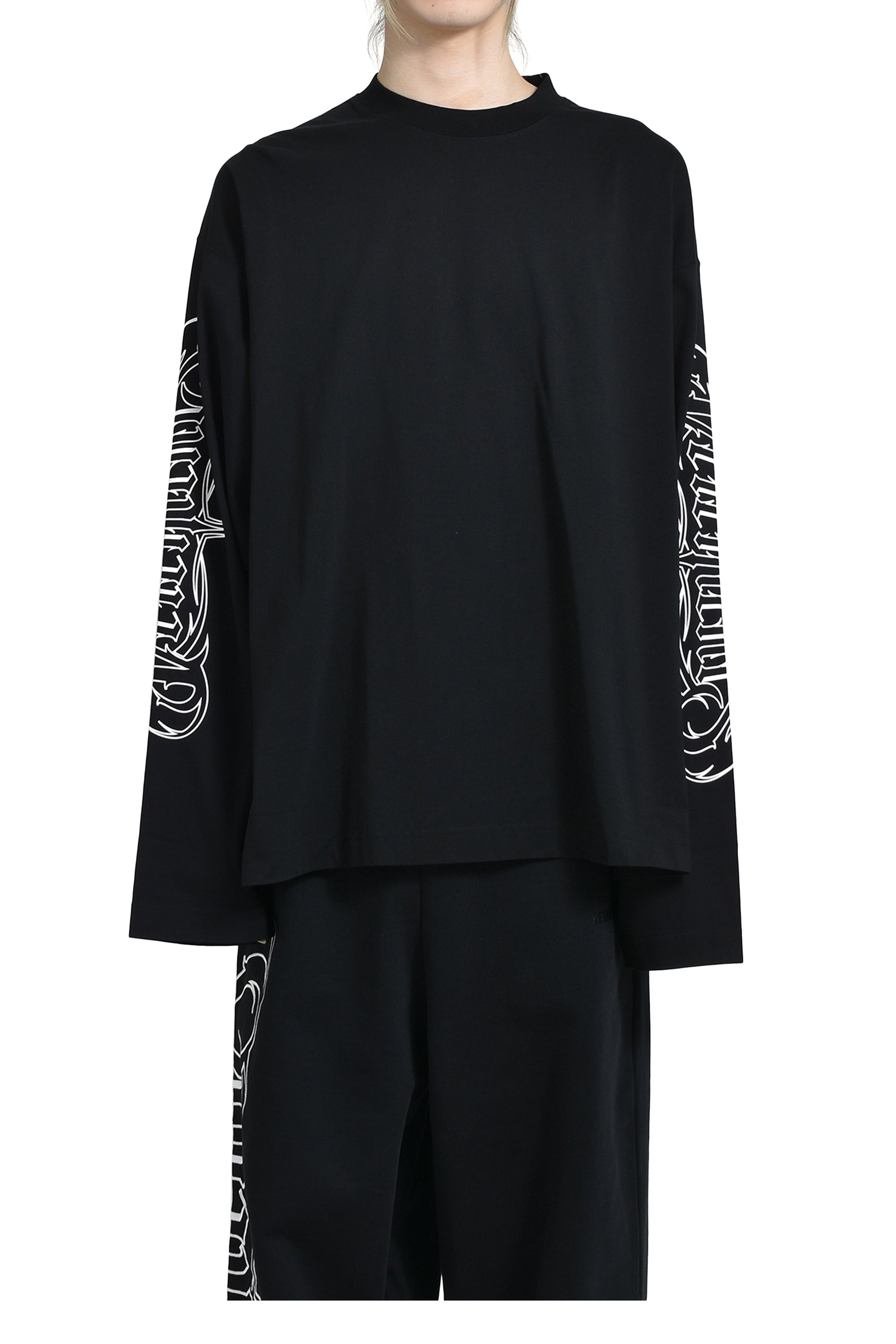 Sizing Size Length Pit to Pit Shoulders Sleeve Length XS 76cm 68cm 60cm 66cm S 77cm 70cm 62cm 67cm M 77cm 72cm 64cm 67cm L 79cm 74cm 65cm 68cm Product Detail - Gender: MEN - Designer: VETEMENTS - Categories: LONG SLEEVE SHIRTS - Material: COTTON 100% - Model Number: ua66ls620b-blk