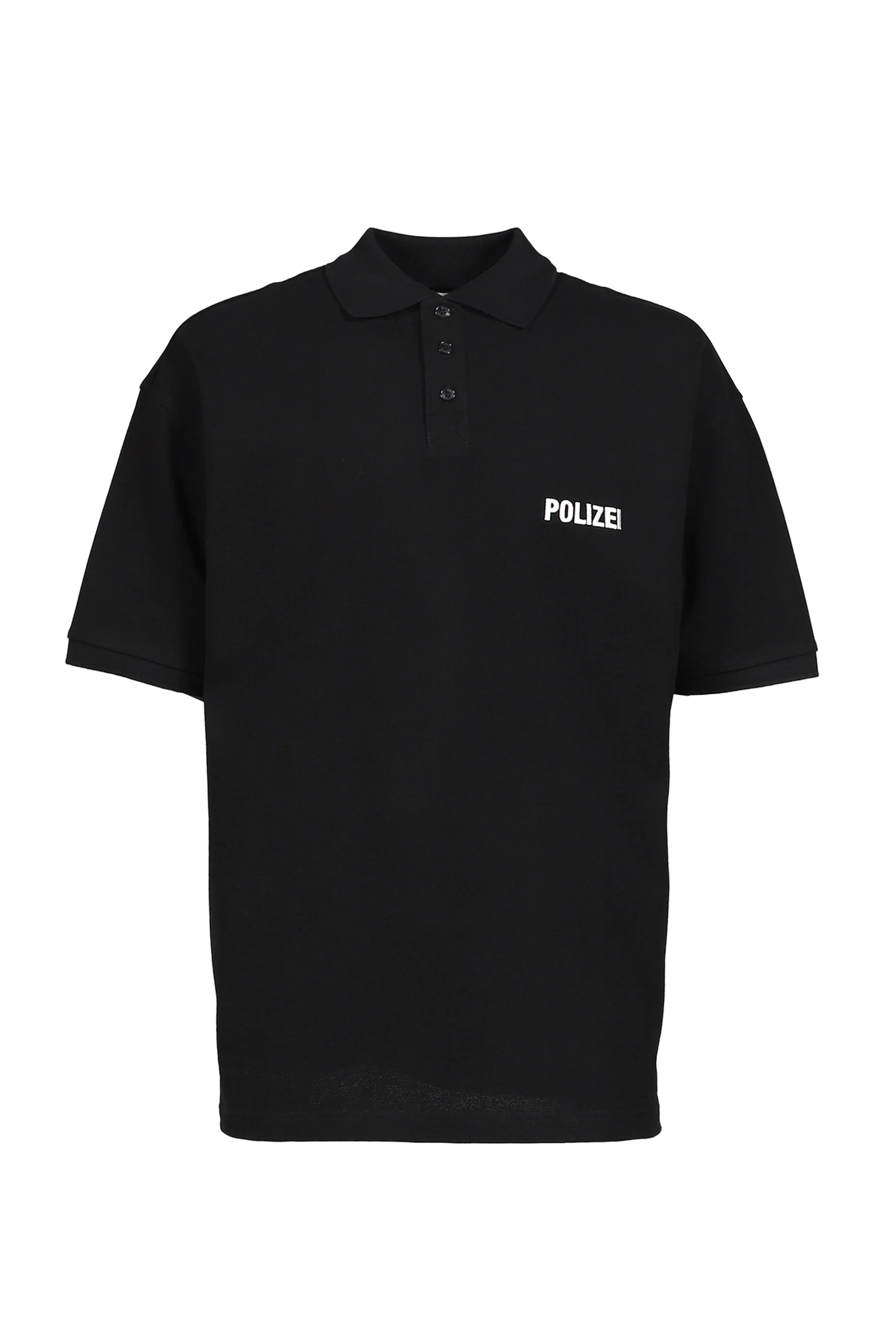Sizing Size Length Pit to Pit Shoulders Sleeve Length XS 73cm 55cm 56cm 23cm S 74cm 55cm 58cm 23cm M 76cm 58cm 61cm 24cm L 77cm 60cm 62cm 24cm Product Detail - Gender: MEN - Designer: VETEMENTS - Categories: S/S polo shirt VETEMENTS ss t-shirts - Material: COTTON 100% - Model Number: me76po226-blk