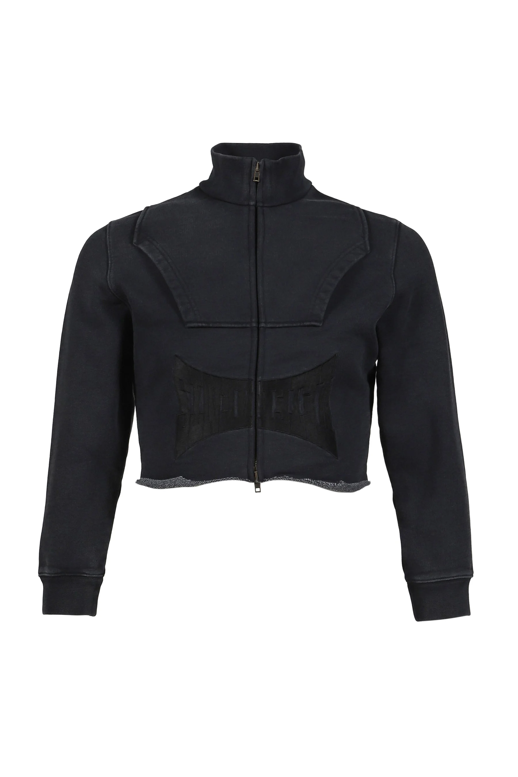 UPSIDE-DOWN LOGO ZIP-UP HOODIE / BLK