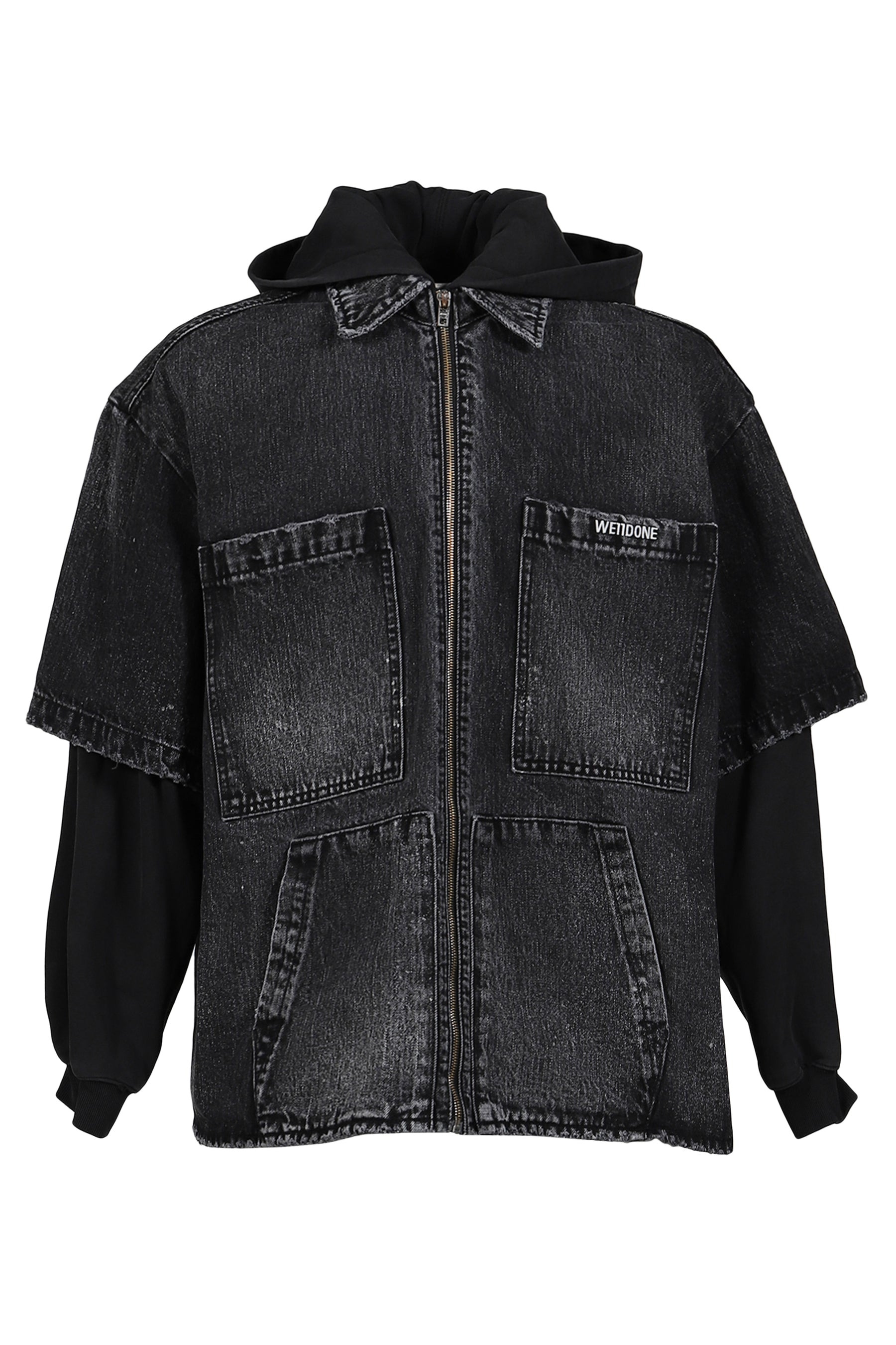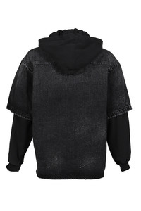 Black Faded Layered Hoodie Denim Jacket