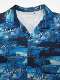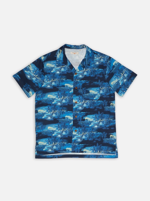 Regular fit Hawaiian shirt made in light organic and Fairtrade regenerative cotton crepe with allover print in mellow shades. Details - Organic and Fairtrade regenerative cotton - All-over printed - Corozo buttons - Regular fit 100% Cotton Made in IN Take the chance to slide smoothly through your holiday wearing this Hawaiian shirt. It's crafted in a light, soft crepe with a characteristic uneven surface. On top of this, we placed a beautiful all-over print in mellow shades. The straight hem and the camp collar complete the relaxed, summery feeling. To make the fabric for this shirt we used organic and Fairtrade regenerative cotton. When you buy this shirt, you can be sure we have paid our share of living wages.