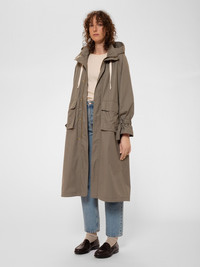 Relaxed, roomy cotton parka crafted in light, papery poplin from organic cotton. Size & Fit Model is wearing size: S Model's height: 178 cm / 5’10'' Details - Organic cotton - Gold finish metal trims - Raglan sleeve - Hidden buttoning - Tortoise buttons - Relaxed fit 100% Cotton Made in PT Relaxed fit parka crafted in light papery poplin made with organic cotton. The front features roomy bellow pockets placed on top of side pockets where you can comfortably rest your hands. The generous width comes from the box pleat at the back. It's held together with a fixed strap. The raglan sleeve ends with a button-closed cuff strap for a custom fit. (According to Wikipedia, this function can also keep water from running down the forearm when using binoculars in the rain.) The roomy, brimmed hood completes the silhouette.