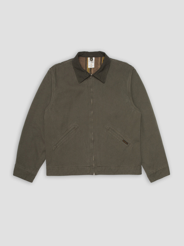 The Blake jacket features a regular fit with a short, boxy silhouette, staying true to the essence of a classic worker jacket. Designed for warmth and mobility, the body is lined with a wool-mix blanket, while the sleeves are lined with a blend of cotton and recycled polyamide for ease of movement. The collar, crafted from the same Duck Canvas in a deeper shade of green, provides a subtle tonal contrast, enhancing its workwear aesthetic. Detailed with tonal stitching and curved welt pocket stitching, this jacket masterfully blends vintage inspiration with practical functionality. Curious about the "Duck Canvas"? Let us explain. This fabric is meticulously constructed using irregular ring-spun yarns twisted into durable 2-ply threads, then yarn-dyed through a patented process to ensure it ages beautifully, much like its historical counterpart. The tightly woven dyed yarns create a firm, highly textural canvas that celebrates its imperfections, showcasing a unique crispness and depth. Perfectly suited for workwear, this robust fabric promises durability and a graceful aging journey, growing richer in character over time. Details - Organic cotton - 11 oz. Rigid duck canvas - Matching thread at seams - Stainless steel trims - Regular fit 100% Cotton Made in TN The Blake jacket features a regular fit with a short, boxy silhouette, staying true to the essence of a classic worker jacket. Designed for warmth and mobility, the body is lined with a wool-mix blanket, while the sleeves are lined with a blend of cotton and recycled polyamide for ease of movement. The collar, crafted from the same Duck Canvas in a deeper shade of green, provides a subtle tonal contrast, enhancing its workwear aesthetic. Detailed with tonal stitching and curved welt pocket stitching, this jacket masterfully blends vintage inspiration with practical functionality. Curious about the "Duck Canvas"? Let us explain. This fabric is meticulously constructed using irregular ring-spun yarns twisted into durable 2-ply threads, then yarn-dyed through a patented process to ensure it ages beautifully, much like its historical counterpart. The tightly woven dyed yarns create a firm, highly textural canvas that celebrates its imperfections, showcasing a unique crispness and depth. Perfectly suited for workwear, this robust fabric promises durability and a graceful aging journey, growing richer in character over time.