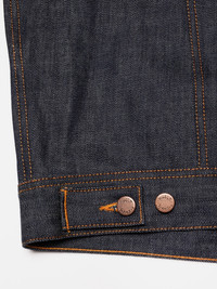 The Nudie Jeans classic, Conny - a slim fit denim jacket with our signature asymmetrical chest pockets and back yoke embroidery - is back in limited numbers. Details - Organic cotton - 13.7 oz. rigid denim - Orange thread at all seams - Copper buttons - Jacron patch - Slim fit 100% Cotton Made in TN The Nudie Jeans classic, Conny - a slim fit denim jacket with our signature asymmetrical chest pockets and back yoke embroidery - is back in limited numbers. The Dry Streaky is crafted from exceptional streaky denim featuring pronounced vertical slubs of varying lengths. As the denim ages with wear, its striking texture becomes more pronounced; initially, the vertical slubbiness stands out, and over time, with washing, a subtle crosshatch texture emerges, creating a rich and dynamic textural journey. The greatest part of this denim jacket is not what it looks like new, but rather the complete opposite - how it will look tomorrow, and the many days to come. Enjoy aging, it is worth the trouble.