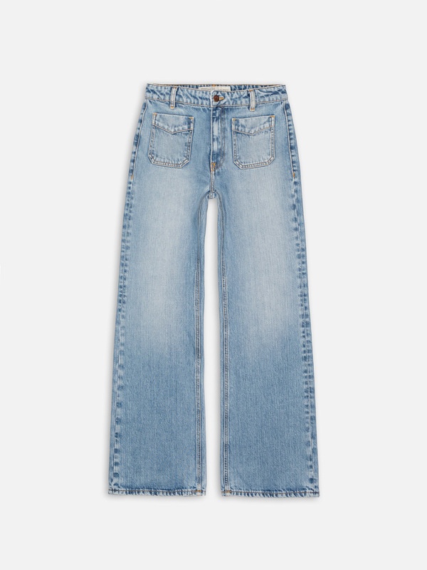 Our western-style pant Holly with an updated fit —a yokeless regular fit with a flared leg and a mid waist. Holly Crafted from streaky denim, these Holly Denim Pants display a striking texture with pronounced vertical slubs of varying length and thickness. Details - Organic cotton - 13.7 oz. Rigid denim - Tobacco thread at seams - Vintage inspired copper button - Zip fly - Four pockets - Jacron patch - Regular fit - Mid waist - Flared leg 100% Cotton Made in TN Our western-style pant Holly with an updated fit —a yokeless regular fit with a flared leg and a mid waist. Holly Crafted from streaky denim, these Holly Denim Pants display a striking texture with pronounced vertical slubs of varying length and thickness. The slubby texture is complemented by a subtle crosshatch pattern, adding depth and dimension to the fabric's rich surface. The expertly crafted wash enhances the fabric’s texture, accentuating the lows for added depth, while the highlighted areas offer brightness and a flatter, more vertically streaked appearance. The sun-bleached, dulled tone further amplifies the vintage vibe, making these jeans a true showcase of premium denim and masterful wash craftsmanship. Enjoy!