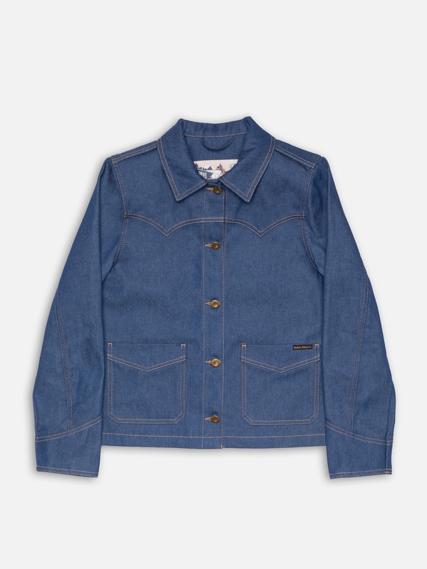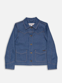 A slightly fitted, short denim jacket with shotgun cuffs, pointed back yoke, and single-point front yokes, inspired by classic ranch wear. Made from muted light blue indigo-dyed denim, it offers a '70s aesthetic with a stiff hand that softens and fades beautifully over time. Made from organic cotton. Details - Organic cotton - 12.5 oz. rigid denim - Light Tobacco thread at seams - Vintage-inspired shiny copper trims - Woven label - Regular fit 100% Cotton Made in TN The inspiration behind this jeans jacket is evident, as it quite literally carries it on the sleeves. Pointed, overlaid single-piece cuffs, also known as shotgun cuffs, are a classic ranch wear feature, as are the pointed back yoke and single-point front yokes. Staying true to its lineage, Kelly is slightly fitted and short, reminiscent of the tobacco hues seen in its seams. Crafted from muted light blue indigo dyed denim, it pays homage to the playful denim aesthetics of the '70s. Constructed with slightly irregular yarns at a fairly high density, the denim exudes a pleasing tone and stiff hand. With wear and washing, the denim will soften and age, slowly evolving to even brighter blue hues.