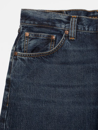 Details - Organic cotton - 14.9 oz. rigid denim - Tobacco thread at seams - Navy back pocket embroidery - Copper trims - Button fly - Jacron patch - Regular fit - High waist - Straight leg - Regular leg opening 100% Cotton Made in TN A high-waist regular-fit jean with a straight leg, in a dark blue wash with subtle wear. Although dark, these jeans got it all. They span an impressive array of indigo hues - from the darkest of the dark to muted bright blue highlights. Abraded areas add softness while the unabraded ones add a rugged marble texture.