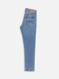 Slim-fit jeans with a slim leg in a mid-blue wash, featuring a worn-in, washed-out appearance. Crafted from stretch denim, showcasing vertical slub and crosshatch patterns. Made from organic cotton. Size & Fit Model is wearing size: W30" L32" Model's height: 186 cm / 6’1” Details - Organic cotton - 13 oz. comfort stretch denim - Tobacco thread at seams - Copper trims - Button fly - Jacron patch - Slim Fit - Mid Waist - Straight Leg - Slim Leg Opening 99% Cotton 1% Elastane Made in TN Slim-fit jeans with a slim leg made in a mid-blue wash that showcase a smoothly worn-in and washed-out appearance. Constructed from stretch denim with exceptional character, the wash has produced a diverse range of hues, from warmly tinted near-white tones to deep indigo shades preserved at seams. Furthermore, the wash has accentuated the denim's inherent character, revealing a rich ring-spun texture that showcases both vertical slub and crosshatch patterns. While maintaining a simple and clean aesthetic, the intricate details of the denim render these jeans delightfully complex and thoroughly enjoyable.