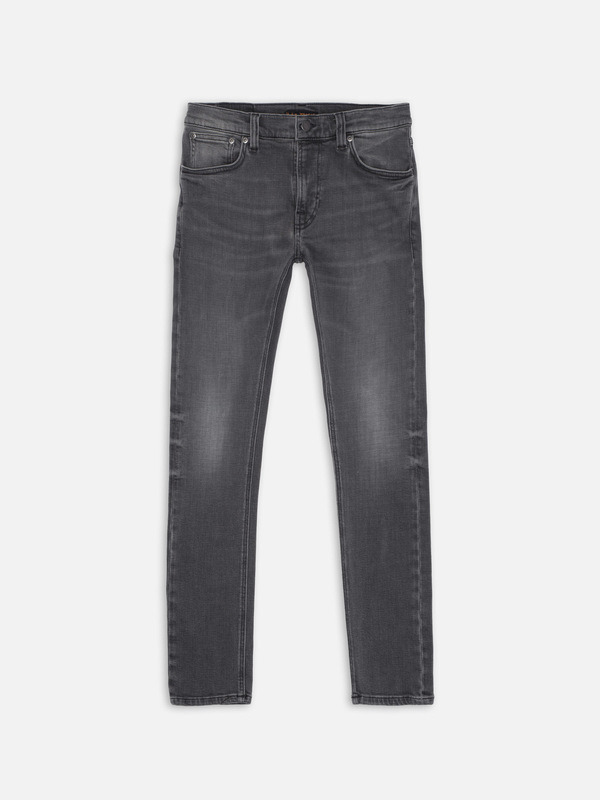 Tight-fit jeans in dark gray wash with contrasting tones. Features textural surface and smooth wear marks for a bold look. Made with organic cotton. Details - Organic cotton - 11 oz. power stretch denim - Black thread at seams - Antique silver trims - Zip fly - Jacron patch - Tight fit - Low waist - Tight Leg - Tight leg opening 99% Cotton 1% Elastane Made in TN Tight-fit jeans in a dark gray wash, featuring contrasting deep gray tones. Crafted from black denim with a smooth yet dynamic texture, these jeans offer both comfort and character. The ring-spun fabric creates a muted salt-and-pepper effect, enhanced by subtle weft slubbiness. Soft abrasions and smooth wear marks add depth, delivering a bold and distinctive monochromatic look.